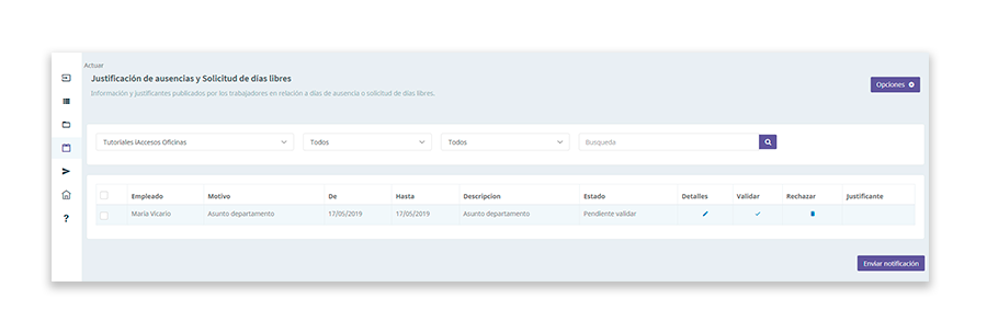 Junto con las opciones de envío de notificaciones desde la lista de empleados, iAccesos generará notificaciones de forma automática u ofrecerá la opción al supervisor desde los siguientes contextos.